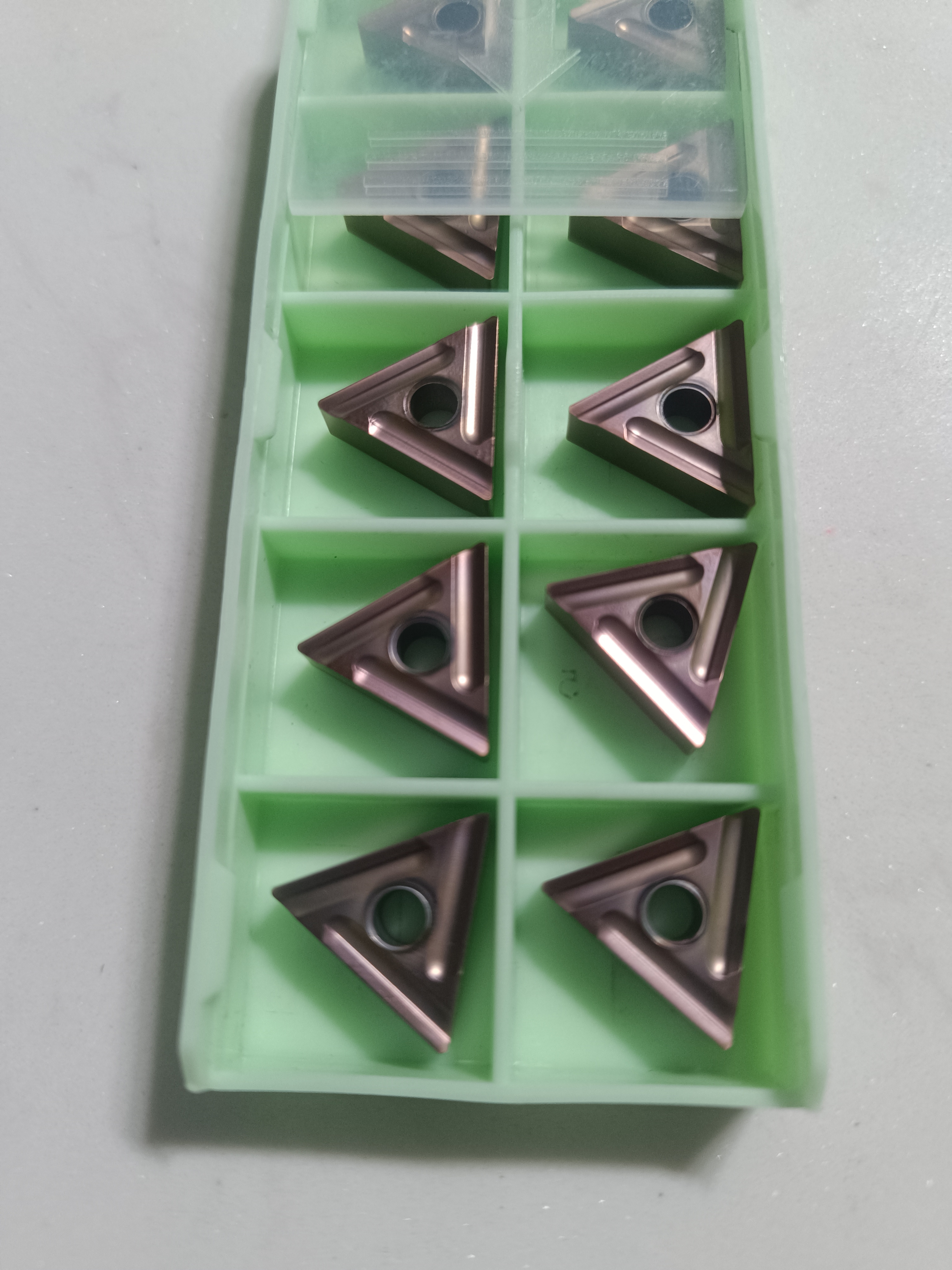 Triangle with hold turning inserts TNMG with negative rake angle is widely using in turning production.